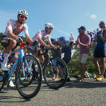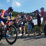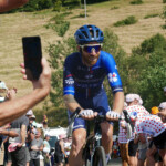 So nach und nach wurde die Stimmung angespannter. Man erfuhr, dass Thibaut Pinot alleine führte. Und dann erschienen die Helikopter. Lange konnte es nicht mehr dauern. Es wurde laut, von unten nach oben. Pinot kam tatsächlich alleine. Ausnahmezustand. Und zum Glück alles ohne irgendwelche allzuaufdringlichen Fans, die man ja auch schon mal gesehen hatte.