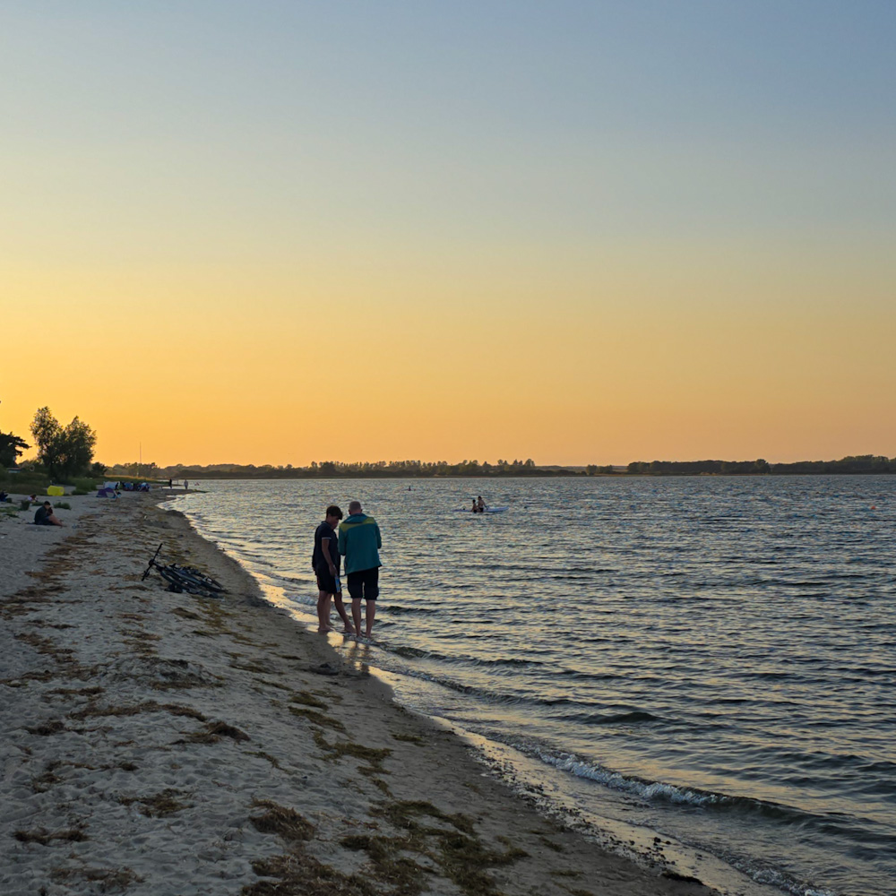 Wie erwartet, trockneten die Radklamotten nicht. Sie noch feucht anzuziehen, geht – ist aber eher nicht so toll. Aber egal, noch mal kurz vom Ueckeritzer Strand verabschieden, dann ging es los. Erst kurz zum Edeka für Frühstück, dann richtig.